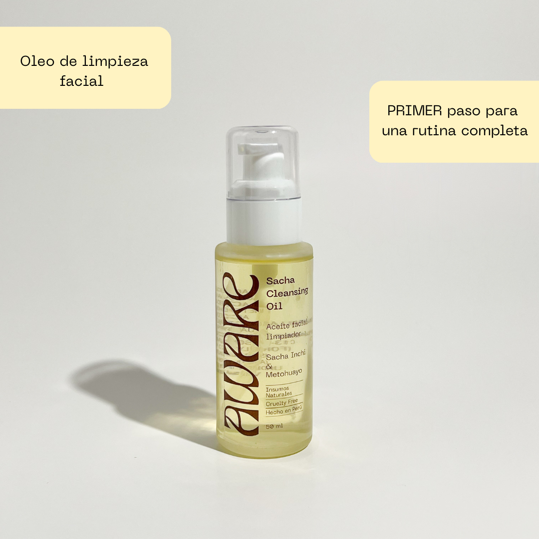 Oleo facial de limpieza a base de sacha inchi y metohuayo. Perfecto para realizar la doble limpieza.